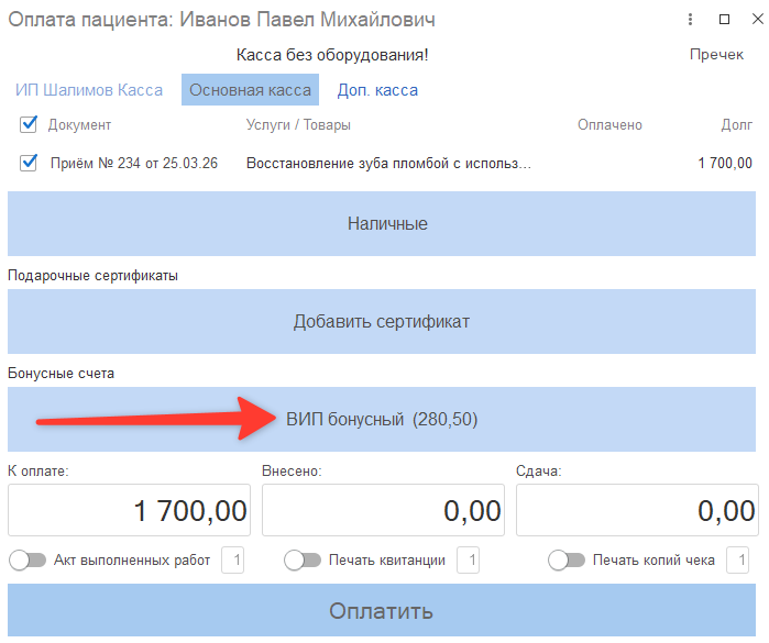 6. Если клиент расплачивается бонусом с данным видом бонусного счета, то бонусы от оплаты данного приема не начисляться.